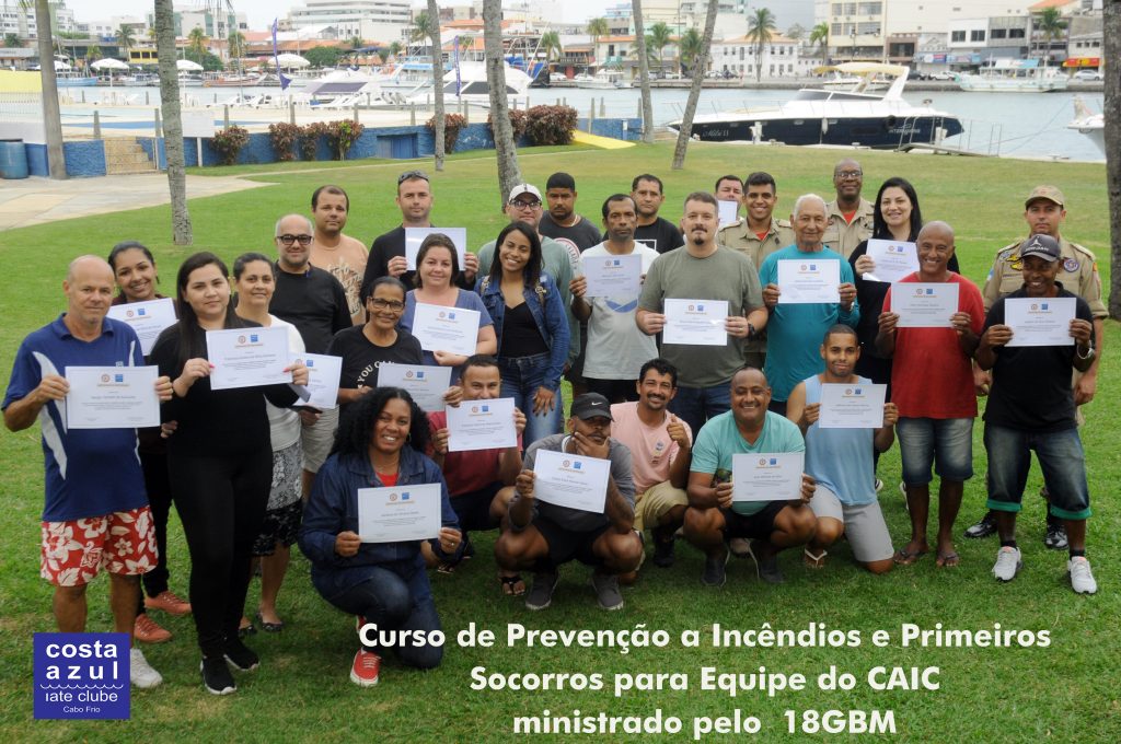 Um dia inteiro de orientações, esclarecimentos e treinamento sobre Prevenção de Incêndios e Primeiros Socorros. A iniciativa da diretoria do Costa Azul Iate Clube é capacitar todos funcionários e colaboradores das empresas parceiras além de marinheiros particulares e prestadores de serviço que frequentam o clube regularmente.