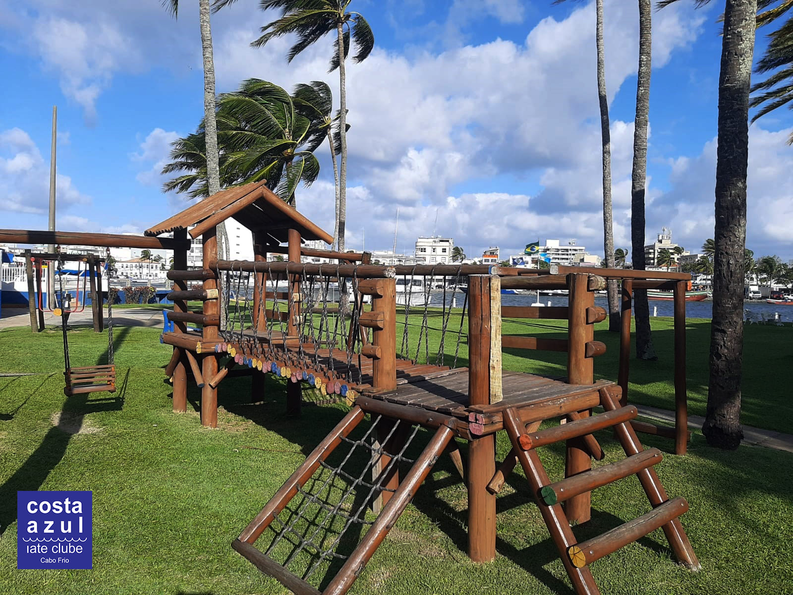 Casamentos, Bodas e 15 anos, Eventos empresariais. O clube dispõe de churrasqueira, amplo jardim com brinquedos, salão nobre e gramado em frente ao Canal do Itajurú .